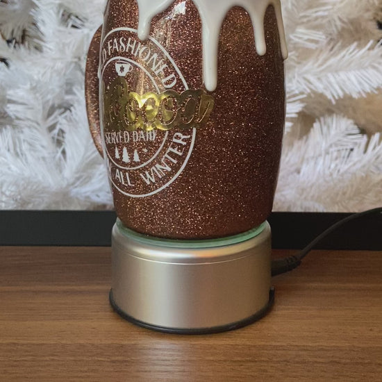 Stainless steel double insulated hot coco Mug with brown glitter design and whip cream drip